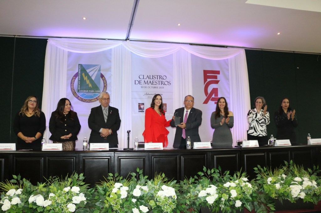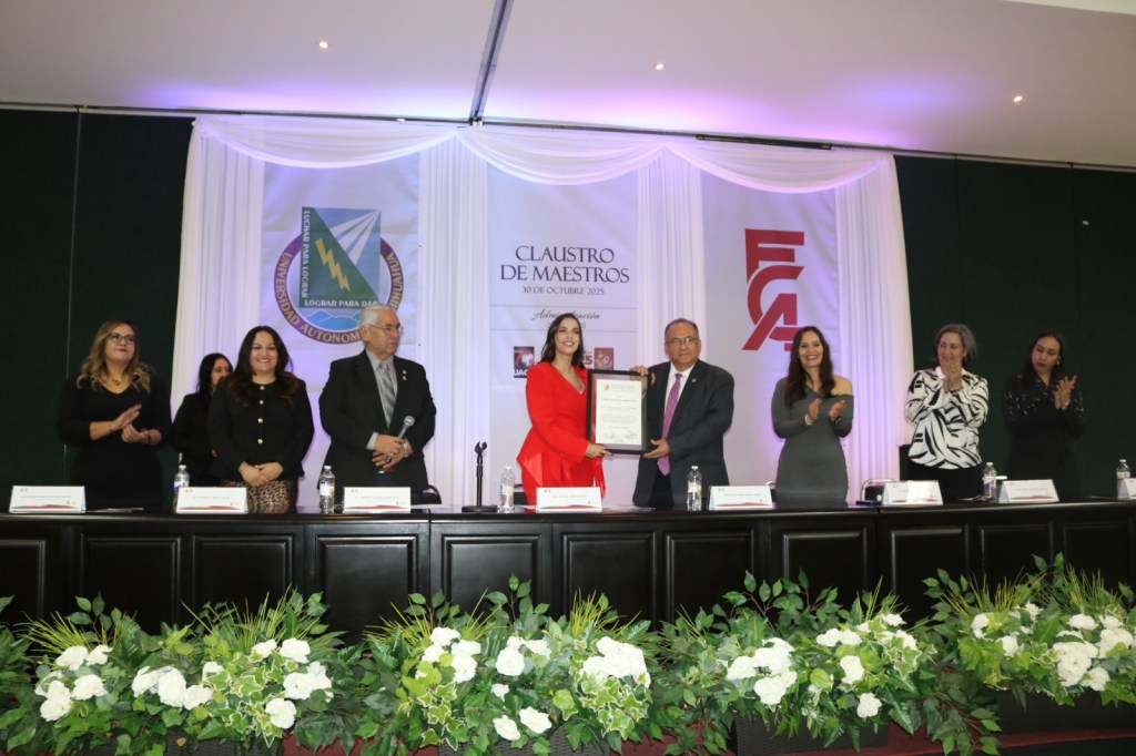 La entrega se llevó a cabo durante el Claustro de Maestros, realizado en la Sala de Seminarios, donde la Dra. Cabrera Ramos presentó su tercer informe de actividades ante la comunidad universitaria.