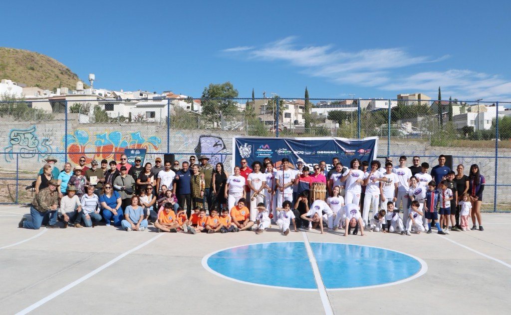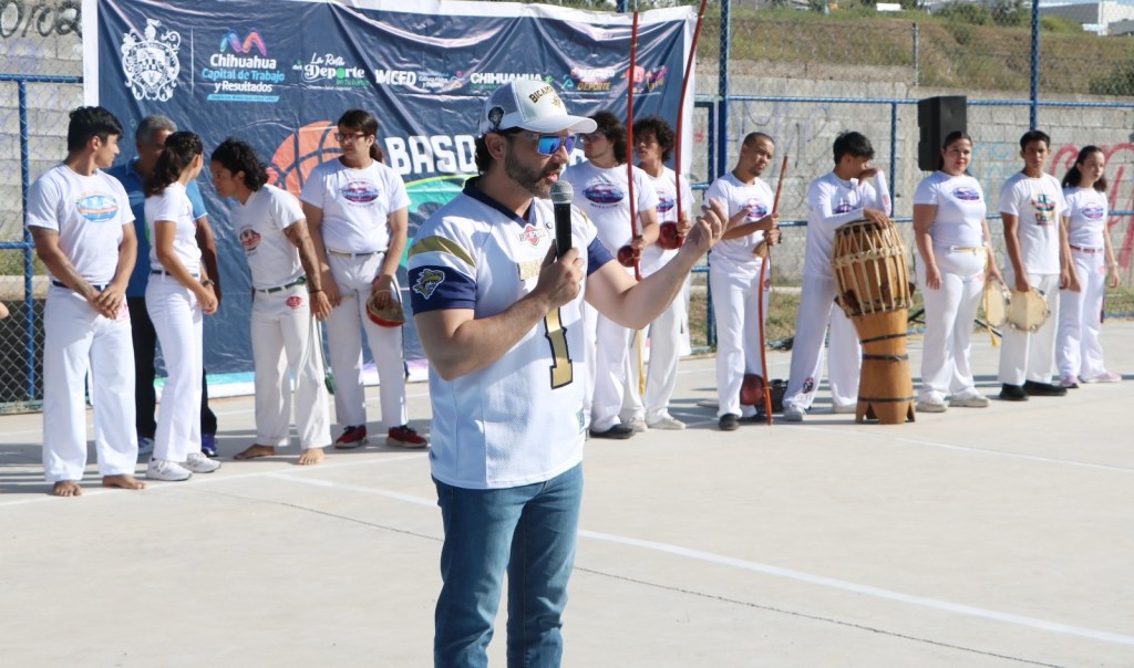 El evento incluyó además una exhibición de Abadá-Capoeira Chihuahua, encabezada por el subcampeón mundial Gabriel Navarro, así como actividades del programa “Ponte Bien”, registro de deportistas y servicios gratuitos de barbería y cortes de cabello por parte de Del Barrio Shop. ✂️🏀⚽