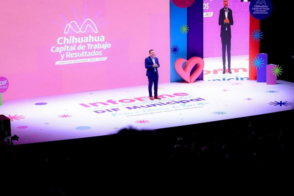 H. Ciudad de Chihuahua, Chih., a 4 de noviembre de 2025.– El alcalde Marco Bonilla reconoció el trabajo del DIF Municipal, encabezado por la presidenta Karina Olivas, durante la presentación de su Primer Informe de Actividades, al destacar que los resultados de este organismo “se miden en sonrisas recuperadas, en abrazos que sanan y en familias que vuelven a creer que no están solas”. 🤝💛