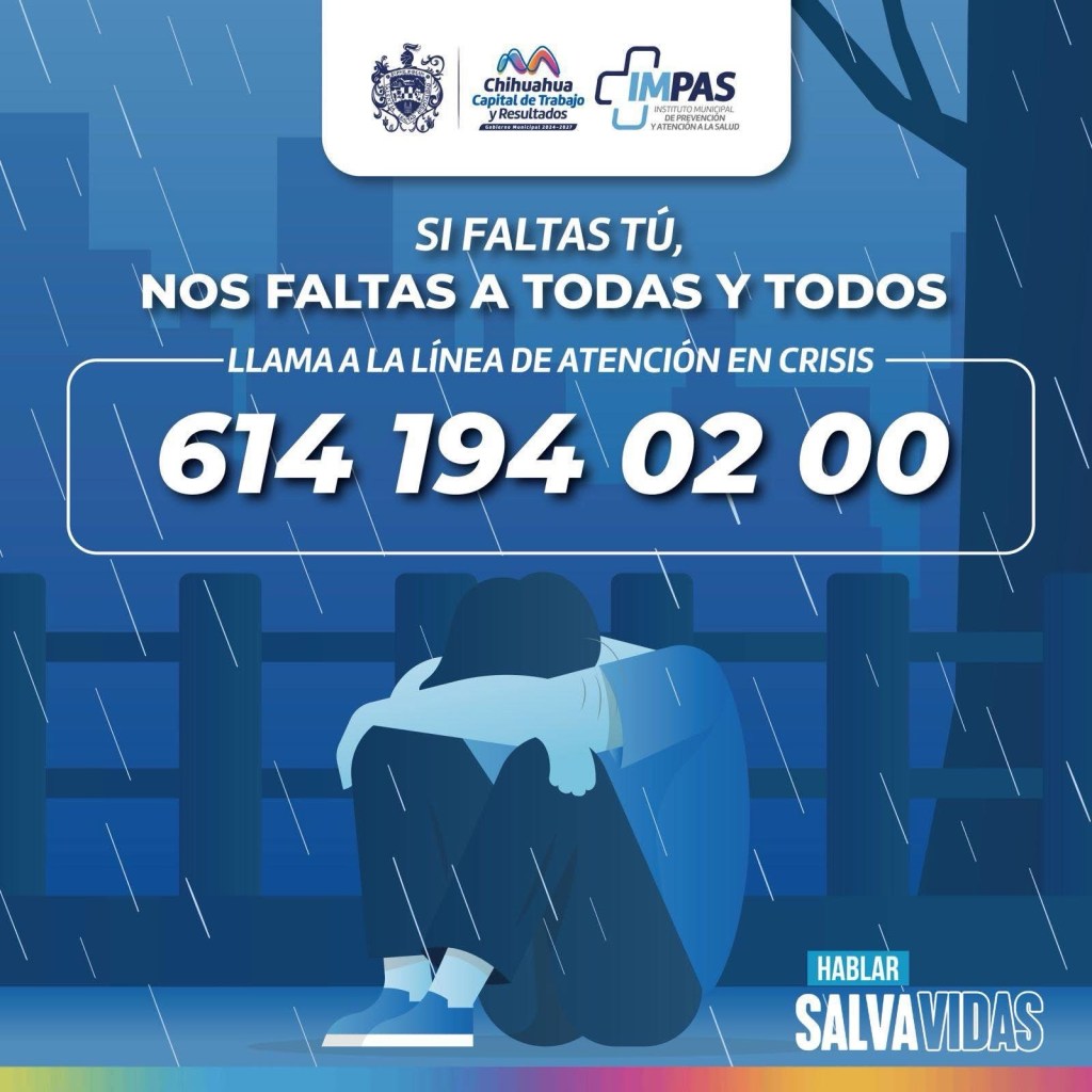 H. Ciudad de Chihuahua, Chih., a 12 de noviembre de 2025.– El Gobierno Municipal de Chihuahua, a través del Instituto Municipal de Prevención y Atención a la Salud (IMPAS), recuerda a la ciudadanía que la Línea de Atención en Crisis está disponible 24/7, para brindar apoyo psicológico inmediato, orientación emocional y contención profesional a personas que atraviesan momentos de angustia, ansiedad, tristeza profunda o pensamientos de autolesión. 📞🧠✨