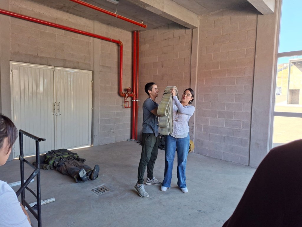 Las y los jóvenes incluso pudieron colocarse parte del equipo de protección para comprender la complejidad de las maniobras y el esfuerzo físico que implica responder a emergencias.