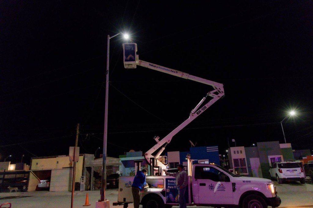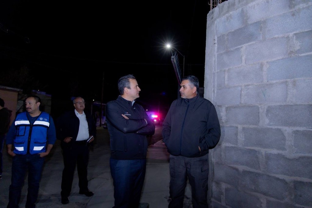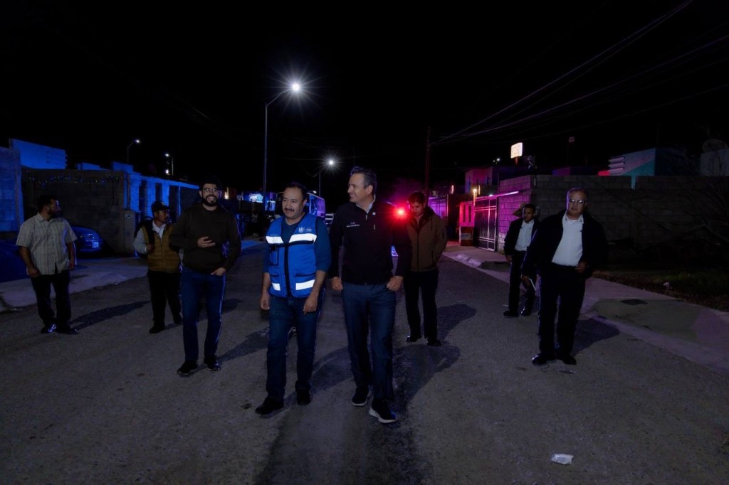 El alcalde de Chihuahua, Marco Bonilla, supervisó la reconversión del alumbrado público antiguo a tecnología LED en la colonia Punta Naranjos, lo que ya permite a las familias disfrutar de una iluminación blanca más potente, eficiente y segura.