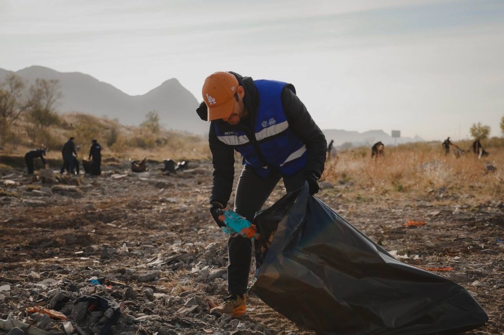 Desde las 8:00 de la mañana, más de 400 personas —entre voluntariado, asociaciones como el Club Rotario Chihuahua, vecinas y vecinos de Minerales, alumnas de Trabajo Social, cadetes de la Academia de Policía y personal de todas las direcciones municipales— se sumaron a las labores de limpieza en el cauce, a la altura de la colonia Minerales.
