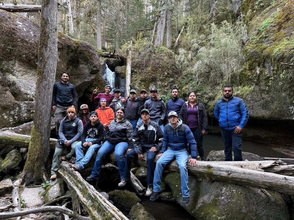 Como parte del recorrido, el grupo de la UACH visitó el aserradero del ejido La Victoria, donde observaron el flujo operativo del aprovechamiento forestal y los procesos de transformación primaria de la madera. Posteriormente se trasladaron al Área de Conservación de Santa Bárbara, en el Ejido El Brillante, donde investigadores del ITES encabezaron una práctica de botánica forestal, enfocada en la identificación de especies y su relevancia ecológica.