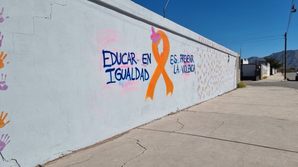 Durante la jornada, las y los estudiantes realizaron la pintura de un mural alusivo a la erradicación de la violencia, además de participar en sesiones sobre tipos de violencia, rutas de denuncia, nuevas masculinidades y el uso de herramientas municipales como las aplicaciones Yo Segura y Marca el Cambio.