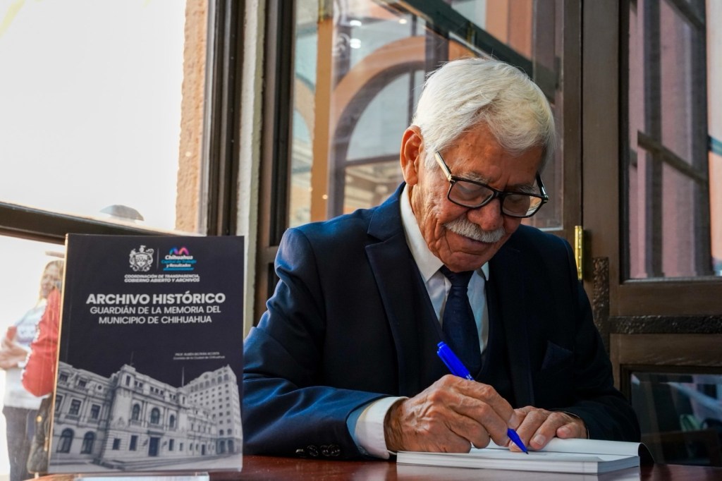 *H. Ciudad de Chihuahua, Chih., a 28 de noviembre de 2025.* El Gobierno Municipal, a través de la Coordinación de Transparencia, Gobierno Abierto y Archivos, presentó el libro “Archivo Histórico: Guardián de la memoria del Municipio”, una obra que reúne documentos fundamentales preservados durante décadas por el cronista de la ciudad, profesor Rubén Beltrán Acosta, y que cuentan la historia, evolución e identidad de Chihuahua.