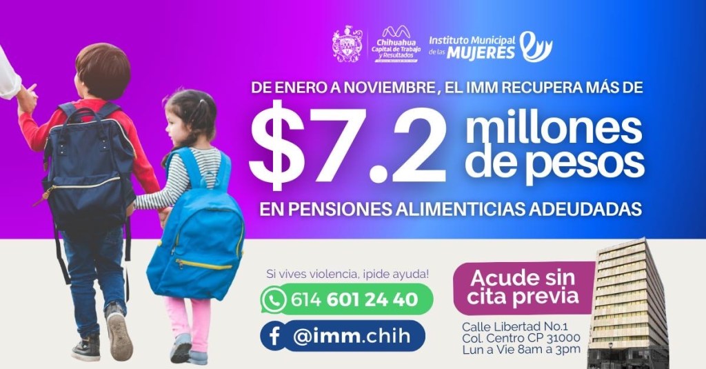 El Instituto Municipal de las Mujeres continúa ofreciendo atención legal integral para la recuperación de pensiones alimenticias, contribuyendo a mejorar la calidad de vida de las mujeres y de sus hijas e hijos.