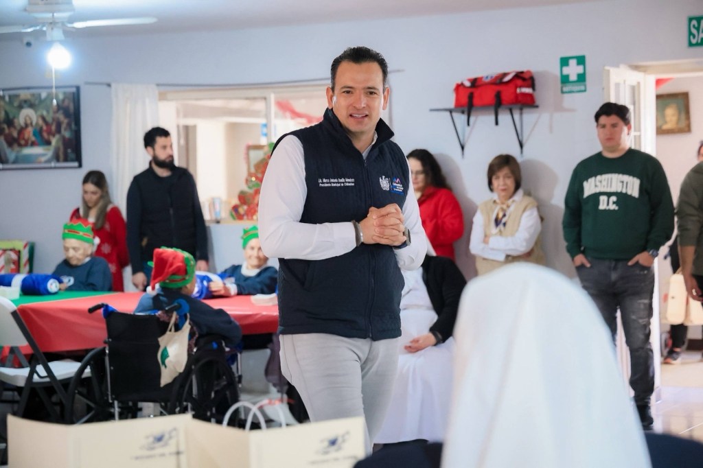 El alcalde Marco Bonilla y la presidenta del DIF Municipal, Karina Olivas, llevaron una cena navideña, regalos y actividades recreativas a las y los adultos mayores del asilo Bocado del Pobre, como parte de las acciones solidarias que cada año se realizan durante la temporada decembrina 🎄👵👴.