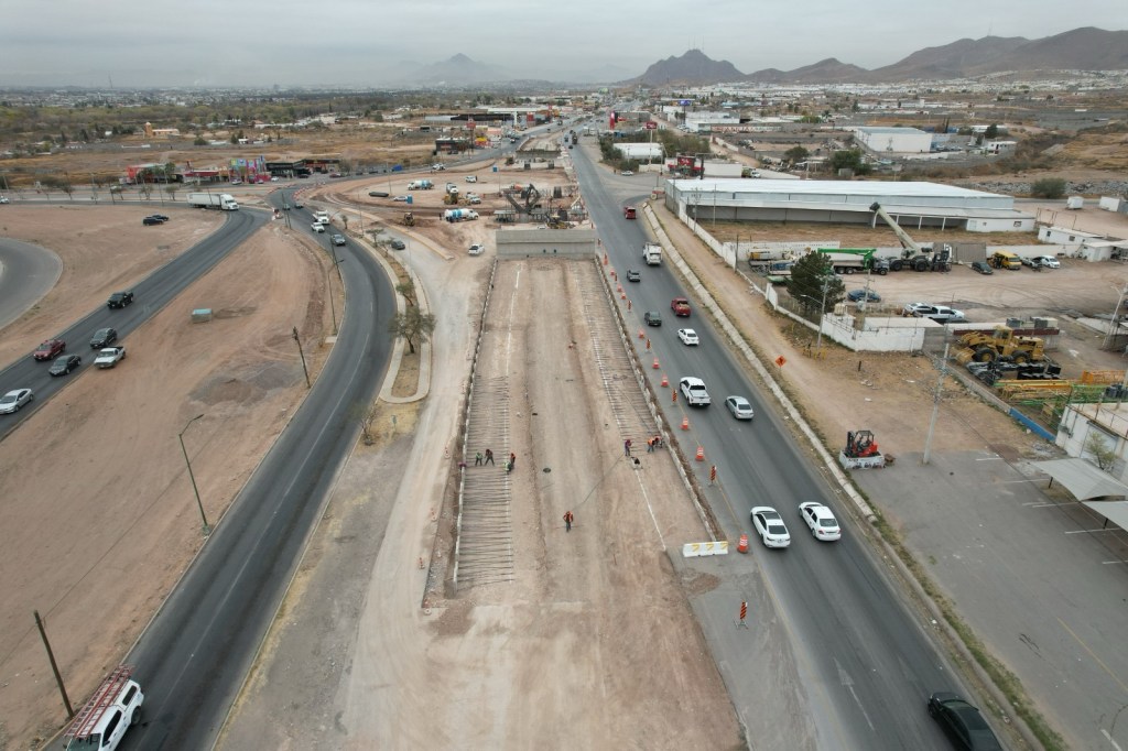 El Gobierno Municipal de Chihuahua, a través de la Dirección de Obras Públicas, inició el año 2026 con avances constantes en la construcción del Paso Superior ubicado en la carretera Chihuahua–Aldama y avenida Fuerza Aérea, el cual registra actualmente un avance del 9 por ciento.