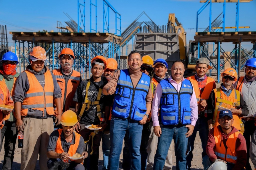 Como muestra de cercanía y reconocimiento, Marco Bonilla convivió con las y los trabajadores de la obra, compartiendo alimentos con ellos al inicio de la jornada y agradeciendo su esfuerzo diario.