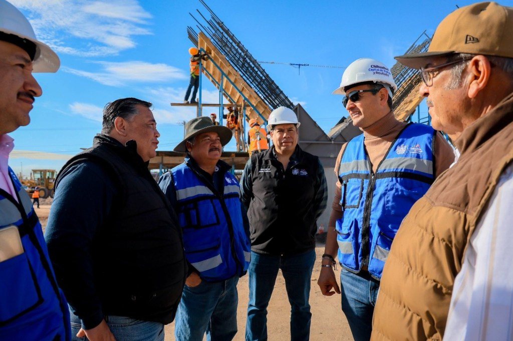 Chihuahua, Chih., a 6 de enero de 2026.– El alcalde Marco Bonilla supervisó los trabajos del paso superior que se construye en la intersección de la carretera Aldama y avenida Fuerza Aérea, una obra clave para mejorar la movilidad en la zona oriente de la ciudad y que actualmente registra un avance del 10 por ciento.