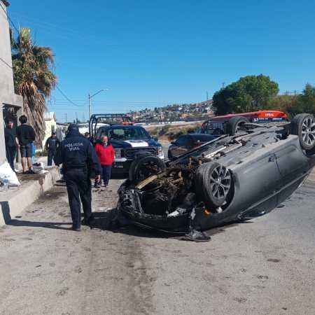 Impacta contra el camellón y vuelca en el Ortiz Mena