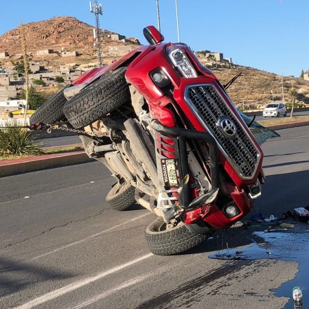 Dos hombres heridos en choque volcadura en carretera a Cuauhtémoc