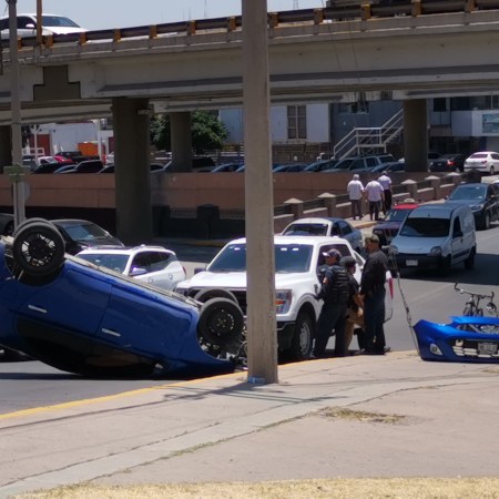 Vuelca vehículo tras chocar contra la banqueta en la Independencia