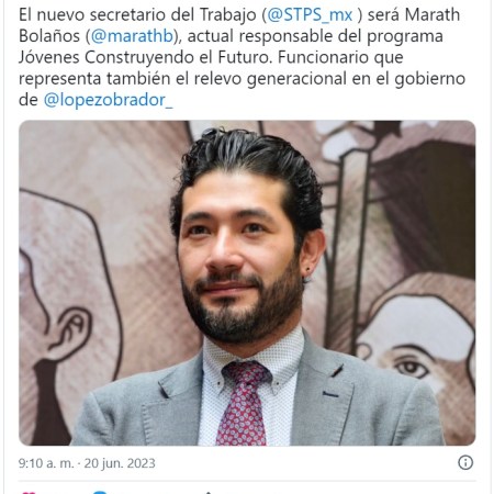 López Obrador designa a Marath Bolaños como nuevo secretario de Trabajo de México